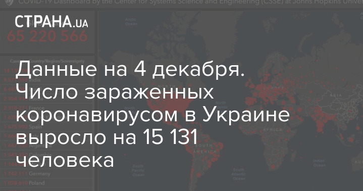 По состоянию на утро пятницы, 4 декабря, в Украине подтвердился 15 131 новый случай заражения коронавирусом.