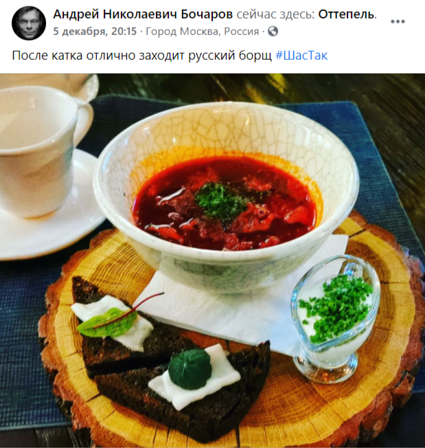 "После катка отлично заходит русский борщ", - написал он на своей странице в Фейсбуке.