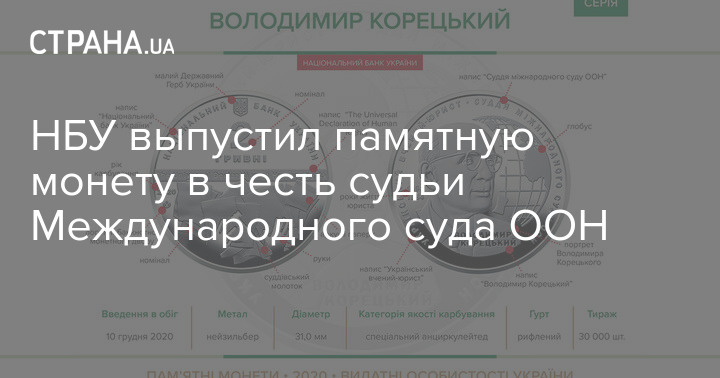 С 10 декабря Национальный банк Украины введет новую памятную монету "Владимир Корецкий".