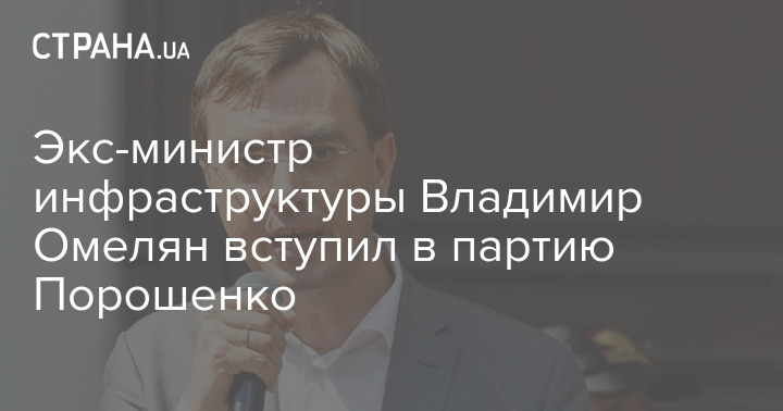 Экс-министр инфраструктуры Владимир Омелян стал членом политической партии "Европейская солидарность", которую возглавляет бывший президент Украины Петр Порошенко.