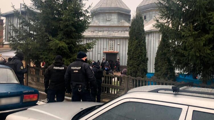 Около 11:00 на территорию храма удалось зайти полиции, вместе с прихожанами и священниками. Сам храм в это время был заблокирован сторонниками ПЦУ.