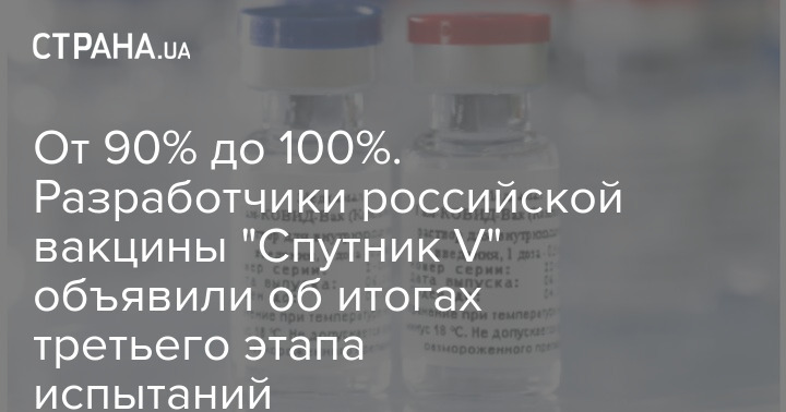"Итоговый анализ показал эффективность вакцины "Спутник V" выше 90%, а против тяжелых случаев 100%, заявили разработчики", - говорится в сообщении.