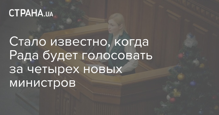 Депутаты Верховной Рады планирует 17 декабря назначить Романа Лещенко на должность министра аграрной политики и продовольствия Украины, Юрия Витренко - первым вице-премьер-министром – министром энергетики и Сергея Шкарлета - министром образования и науки. Назначение Юлии Лапутиной министром по делам ветеранов, вероятно, будет включено в повестку дня 18 декабря.