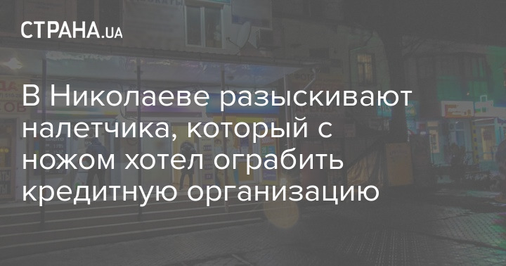 Вечером в субботу, 19 декабря, в Николаеве неизвестный с ножом в руках пытался ограбить кредитную организацию, пригрозив сотруднице ножом. Сейчас его разыскивают правоохранители.