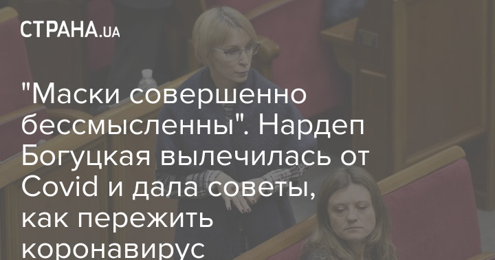 Богуцкая, которая выступала против ношения масок, рассказала, что она заразилась, "в тот очень редкий случай", когда она была в ней. Это было в маршрутке, когда нардеп, по ее словам, ехала на работу в Верховную Раду.