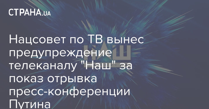 Нацсовет по ТВ вынес предупреждение телеканалу "Наш" за показ отрывка пресс-конференции Путина