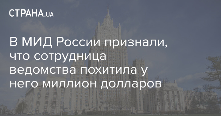 В Министерстве иностранных дел России признали, что год назад из главного здания ведомства - одной из семи московских сталинских высоток - было похищено более миллиона долларов. Кражу совершила сотрудница МИД.