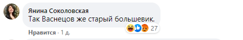 Под постом Джангирова уже развязалась полемика. "Так Васнецов же старый большевик", - пишет журналистка Янина Соколовская.