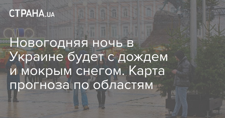 Новогодняя ночь в Украине обещает быть дождливой и достаточно теплой. Ночью в северных, местами в центральных областях, а также в Харьковской области ожидаются небольшие дожди, а в западных областях - умеренные дожди с мокрым снегом. Ветер преимущественно юго-восточный, 5-10 м/с. Об этом сообщает Укргидрометцентр.