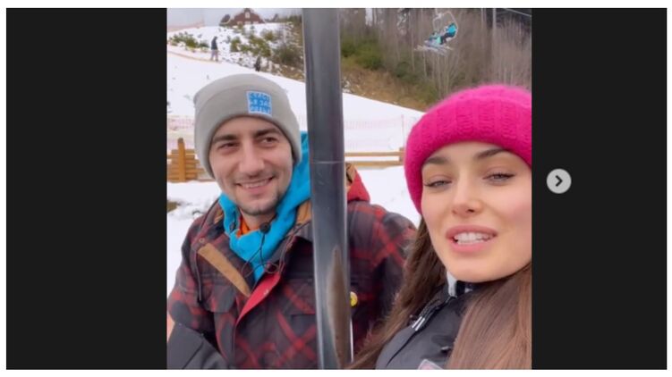 После завершения проекта "Холостячка" пара проводит первый совместный отпуск в Карпатах. В Instagram появилось веселое новогоднее видеопоздравление, записанное во время скоростного спуска.