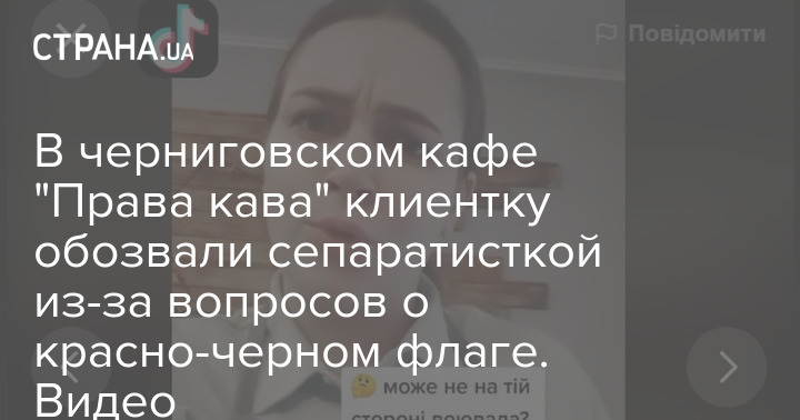 В черниговской кофейне "Права кава", которую открыли ветераны АТО, не стали обслуживать клиентку, которая спросила, зачем в заведении висит красно-черный флаг. Женщину обвинили в сепаратизме.