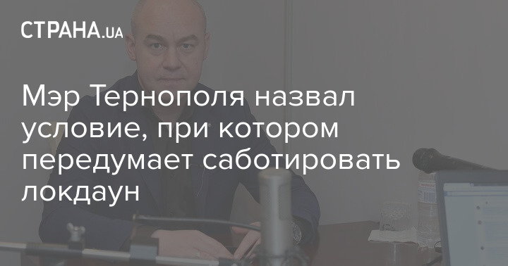 Мэр Тернополя назвал условие, при котором передумает саботировать локдаун