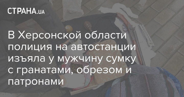В Херсонской области правоохранители задержали 37-летнего мужчину, в сумке у которого находились обрез охотничьего ружья, граната Ф-1, граната РГН и более 100 патронов различного калибра.