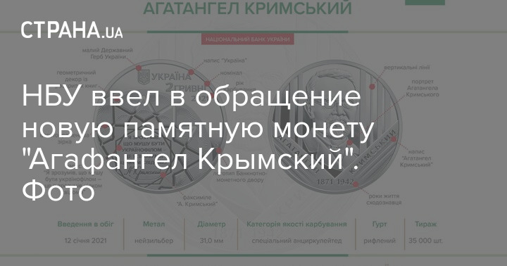 Также "Страна" сообщала, что НБУ введет в обращение монету "175 лет создания Кирилло-Мефодиевского общества". Она посвящена украинской тайной организации, возникшей в Киеве в конце 1845 года, что было одним из проявлений подъема национального движения и активизации общеславянского движения.