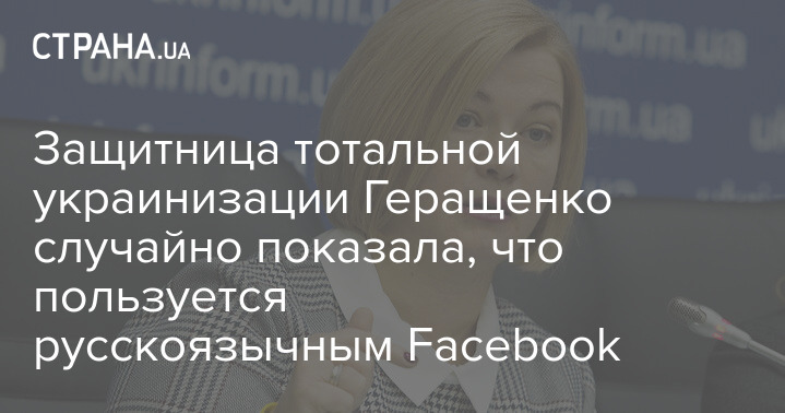 Защитница "тотальной украинизации" Геращенко случайно показала, что пользуется русскоязычным Facebook. Скриншот: Геращенко