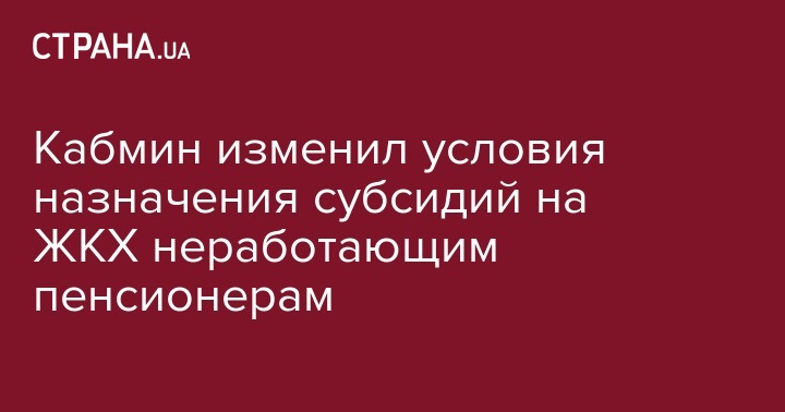 Кабмин Украины изменил правила назначения жилищных субсидий для неработающих пенсионеров. Об этом сообщает "Интерфакс Украина".