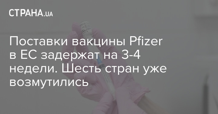 Поставки вакцины от коронавируса COVID-19 разработки немецкой компании BioNTech и американской Pfizer Inc. в страны ЕС отложат на несколько недель.