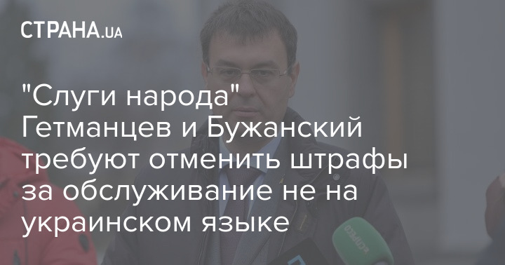 "Слуги народа" Гетманцев и Бужанский требуют отменить штрафы за обслуживание не на украинском языке
