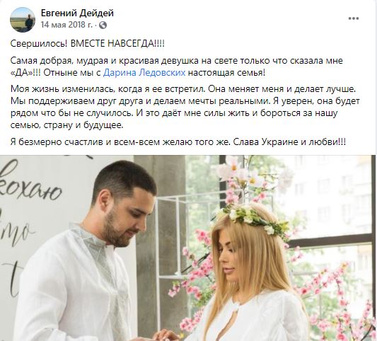 Евгений и Дарина Дейдей развелись. Фото facebook.com/daryna.liedovskykh