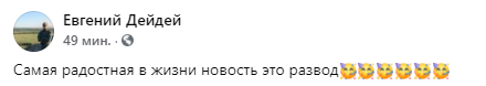 "Самая радостная в жизни новость это развод", - написал Дейдей 18 января и добавил к этому сообщению много смайликов.