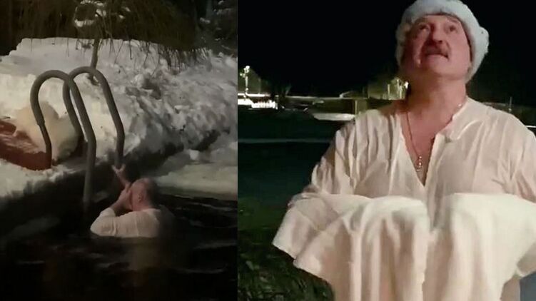 Лукашенко окунулся в воду с головой три раза. Выйдя из воды, он обратился с молитвенным воззванием к богу.