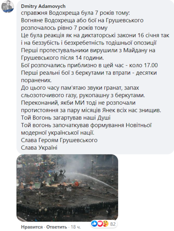 С ней соглашается Дмитрий Адамовский, который пишет, что настоящее Крещение украинцев было во время революции на Майдане. И проходило не водой, а огнем.