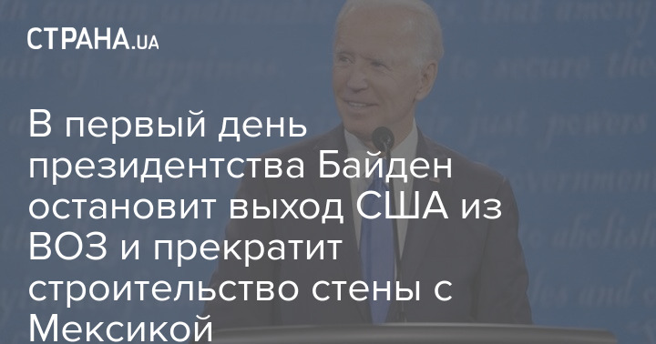 Избранный президент США Джо Байден в первый же день президентства собирается подписать ряд указов, которые будут касаться ВОЗ, иммиграционной политики и климата. В частности будет остановлено строительство стены с Мексикой.