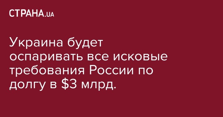 Украина будет оспаривать все исковые требования России по долгу в $3 млрд.
