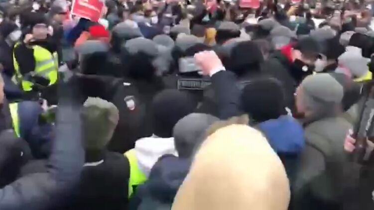 В Москве на Пушкинской площади, где сегодня, 23 января, проходит митинг сторонников оппозиционера Алексея Навального, начались стычки с полицией и потасовки.