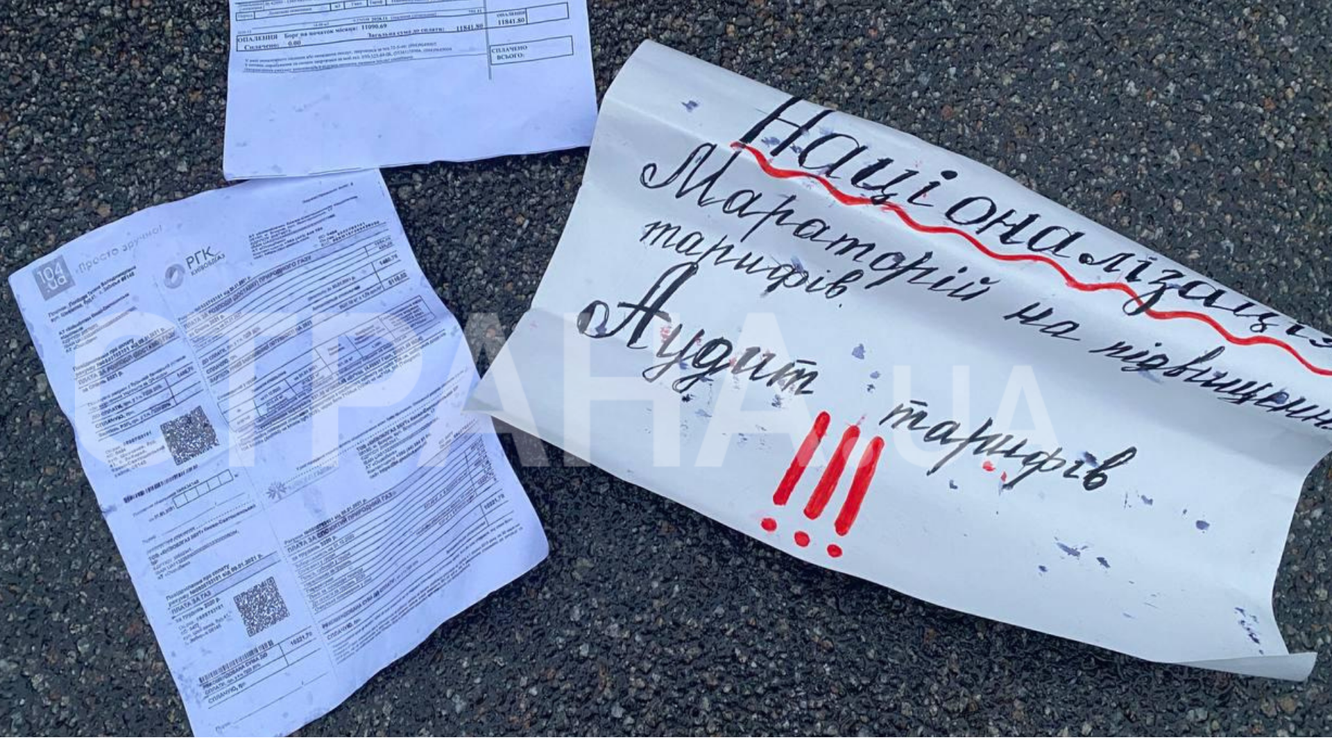 В Киеве акцию провели прямо под Офисом президента, а затем повезли платежки к его резиденции за городом.