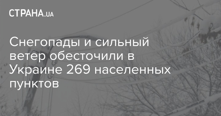 Накрывшая Украину непогода оставила без электроснабжения 269 населенных пунктов в 12 областях. Автоматическая защита ЛЭП срабатывала из-за сильных порывов ветра, дождя, мокрого снега, обрушившихся на некоторые регионы Украины в ночь на 26 января. Об этом сообщается на сайте ГСЧС.