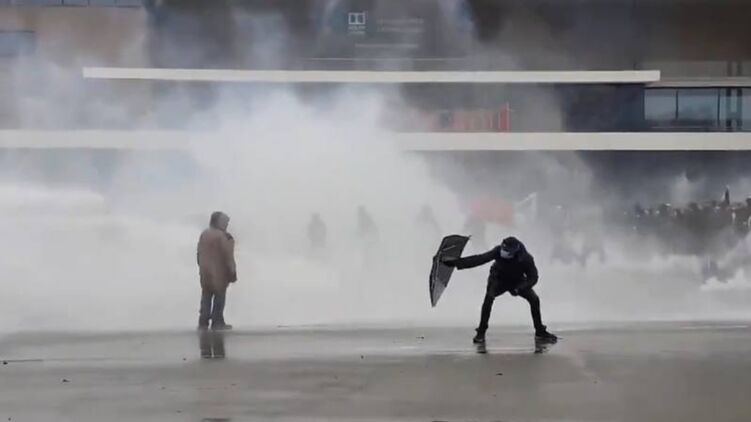 Полиция Франции применила водометы против митингующих парижан. Скриншот с видео