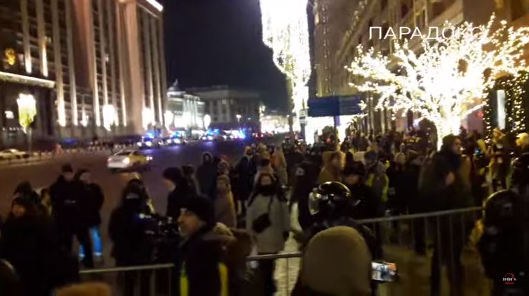 22:08 Столешников переулок в сторону Тверской. Собравшиеся скандируют: "Отпускай!"