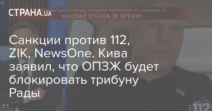 Депутат от ОПЗЖ Илья Кива в кулуарах Рады заявил, что их фракция будет блокировать трибуну парламента из-за введения санкций в отношении Тараса Козака и блокировки трёх телеканалов, 112, Zik, Newsone.