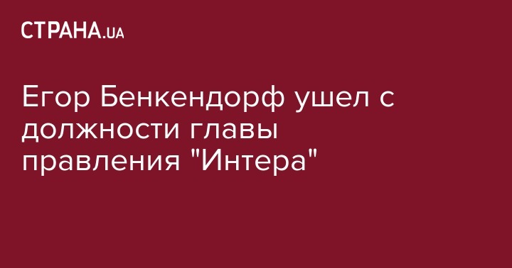 Глава правления телеканала "Интер" Егор Бенкендорф покинул эту должность, вместо него телеканал возглавила Екатерина Шкуратова, занимавшая должность члена правления телеканала. Об этом сообщает "Интерфакс-Украина".