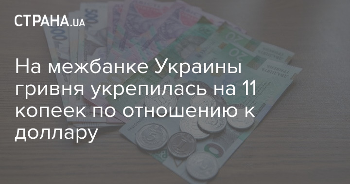 На межбанке Украины гривня укрепилась на 11 копеек по отношению к доллару
