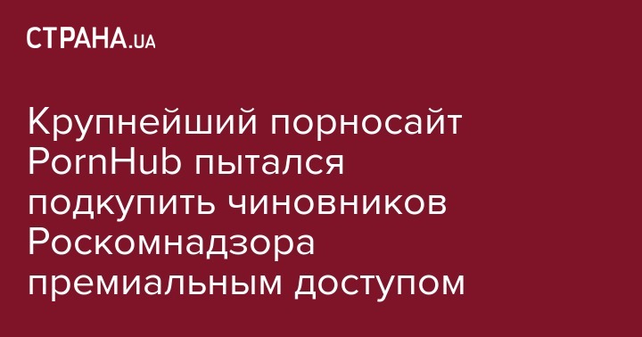 Крупнейший порносайт PornHub пытался подкупить чиновников Роскомнадзора премиальным доступом