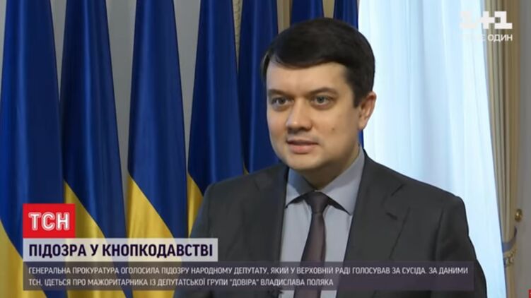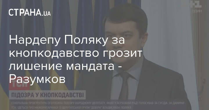 Спикер Верховной Рады Украины Дмитрий Разумков пояснил, что грозит мажоритарщику из группы "Доверие" Владиславу Поляку, которому выдвинули подозрение в кнопкодавстве. По словам председателя парламента, нардеп потеряет полномочия, если суд признает его виновным.