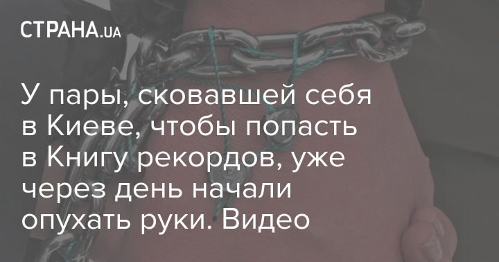 У пары, сковавшей себя в Киеве, чтобы попасть в Книгу рекордов, уже через день начали опухать руки. Видео