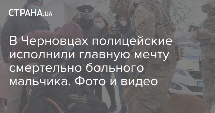 В Черновцах сотрудники Национальной полиции исполнили заветное желание больного неизлечимым раком мозга ребенка, который мечтал вырасти стать правоохранителем. Смертельно больной 10-летний мальчик на один день смог почувствовать себя частью команды полиции.