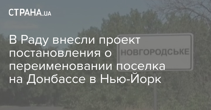 Во вторник, 16 февраля, в Верховную Раду внесли проект постановления о переименовании пгт Новгородское Бахмутского района Донецкой области в Нью-Йорк.