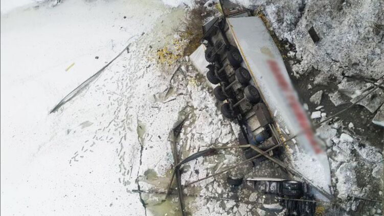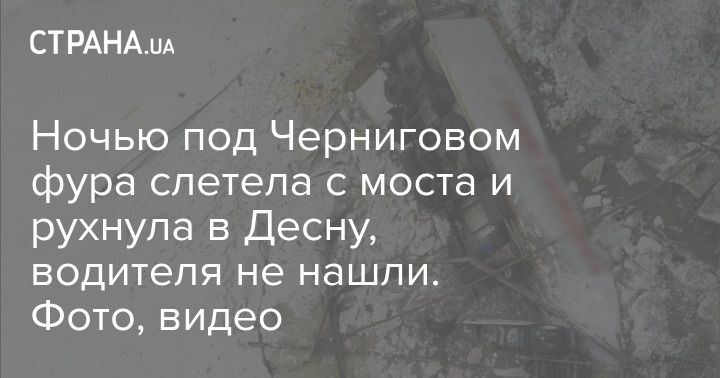 В ночь с воскресенья на понедельник, 22 февраля, в Черниговской области фура упала с моста в реку Десна. По предварительным данным, водитель не смог выбраться из кабины грузовика.