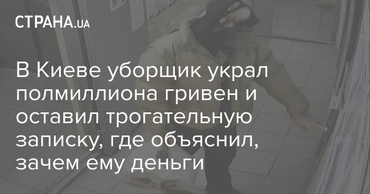 В Киеве уборщик обнаружил в квартире, в которой работал около года, крупную сумму денег и украл их. На месте денег он оставил записку, что якобы они нужны ему для спасения человека и он вернет долг через пару лет.