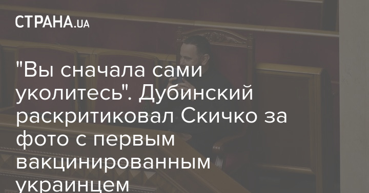 "Вы сначала сами уколитесь". Дубинский раскритиковал Скичко за фото с первым вакцинированным украинцем