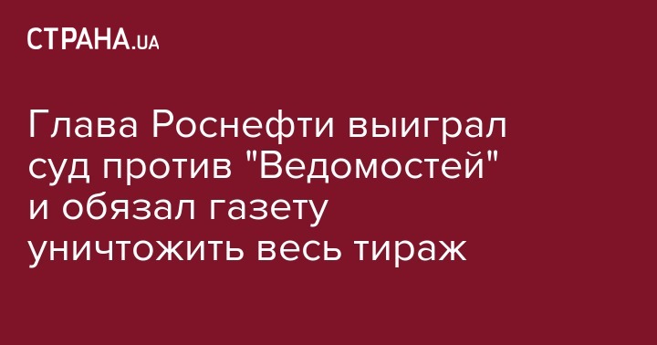 Суд обязал учредителя "Ведомостей" удалить заметку с сайта и уничтожить сохранившийся тираж номера. Материальных претензий в связи с публикацией Игорь Сечин не выдвигал.