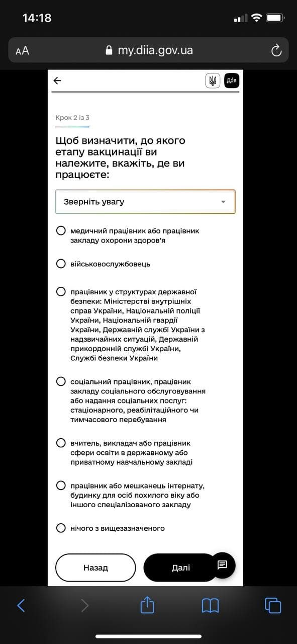 3. Вам нужно будет поставить галочку, чтобы выяснить, на каком этапе вакцинации из пяти вас могут вакцинировать. Всего будет пять этапов вакцинации в Украине.