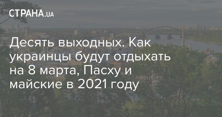 Весной 2021 по случаю 8 марта, Пасхи и 9 мая украинцы получат дополнительные выходные.