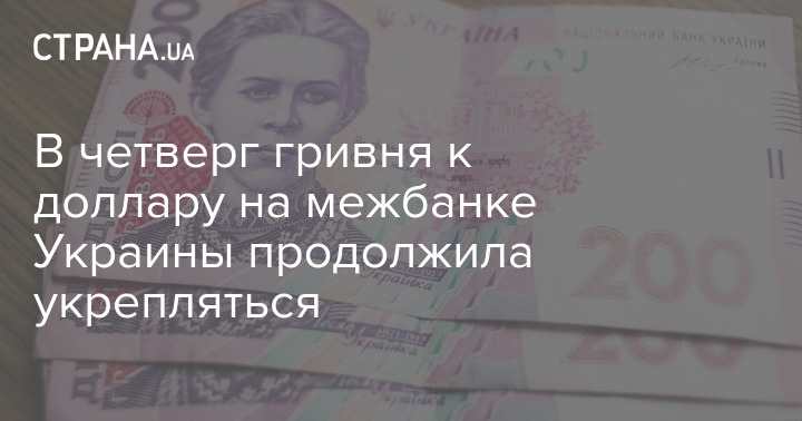 В четверг гривня к доллару на межбанке Украины продолжила укрепляться