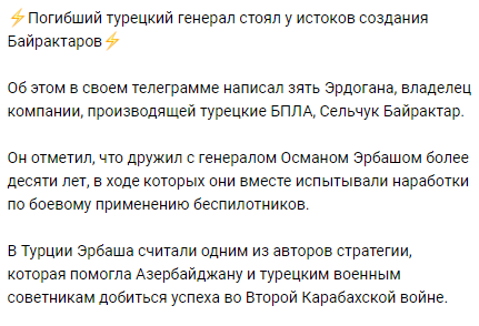 Помимо этого, в Турции Эрбаша считали одним из авторов стратегии, которая помогла Азербайджану и турецким военным советникам добиться успеха в конфликте в Нагорном Карабахе.