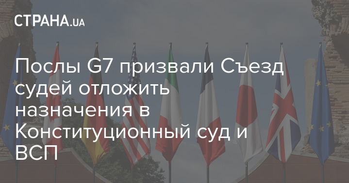 Послы стран "Большой семерки" обратились к Съезду судей Украины, который намечен на 9 марта, с призывом отложить назначение судей в Высший совет правосудия (ВСП) и Конституционный суд (КС) пока не будет утвержден новый процесс их отбора.
